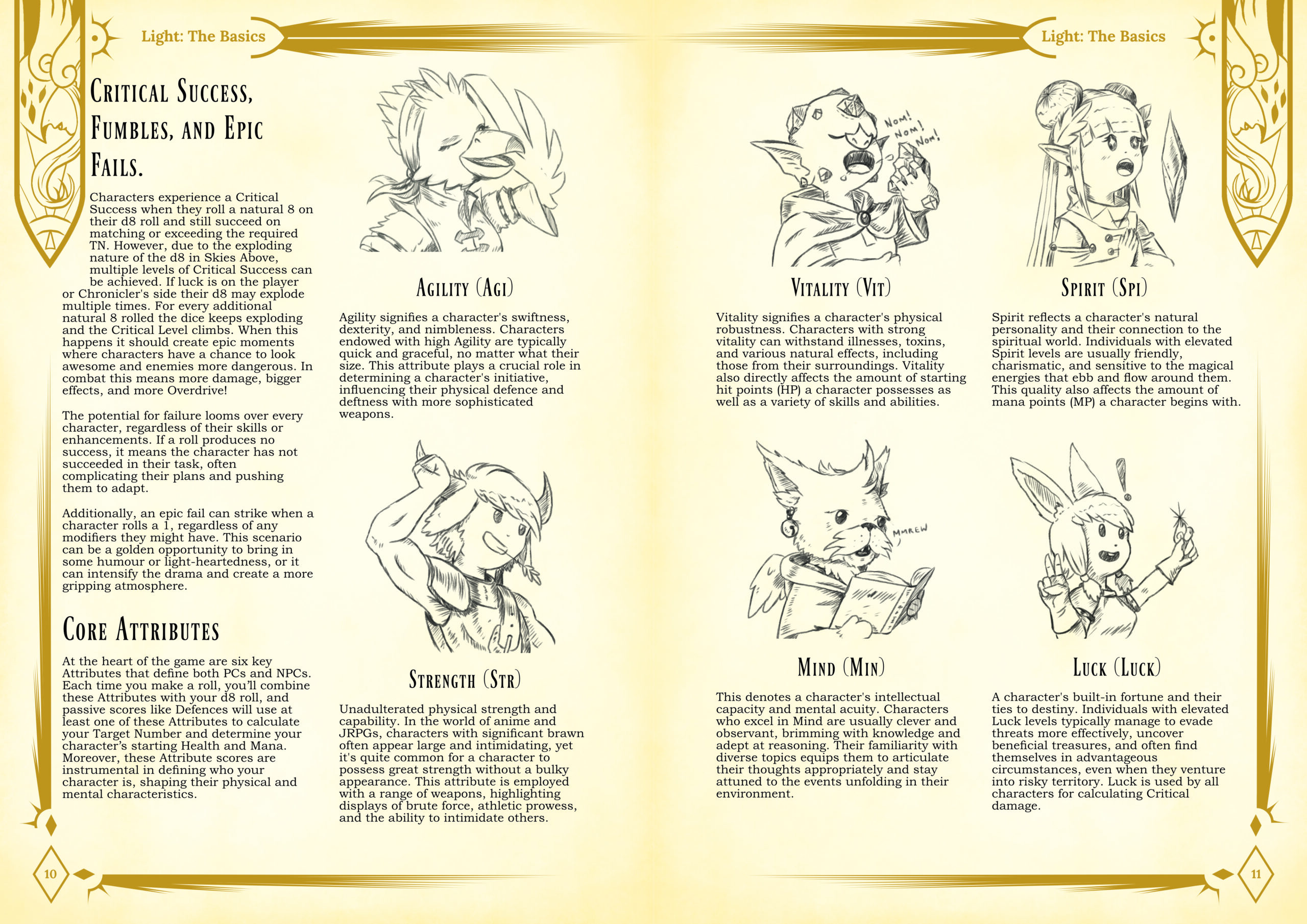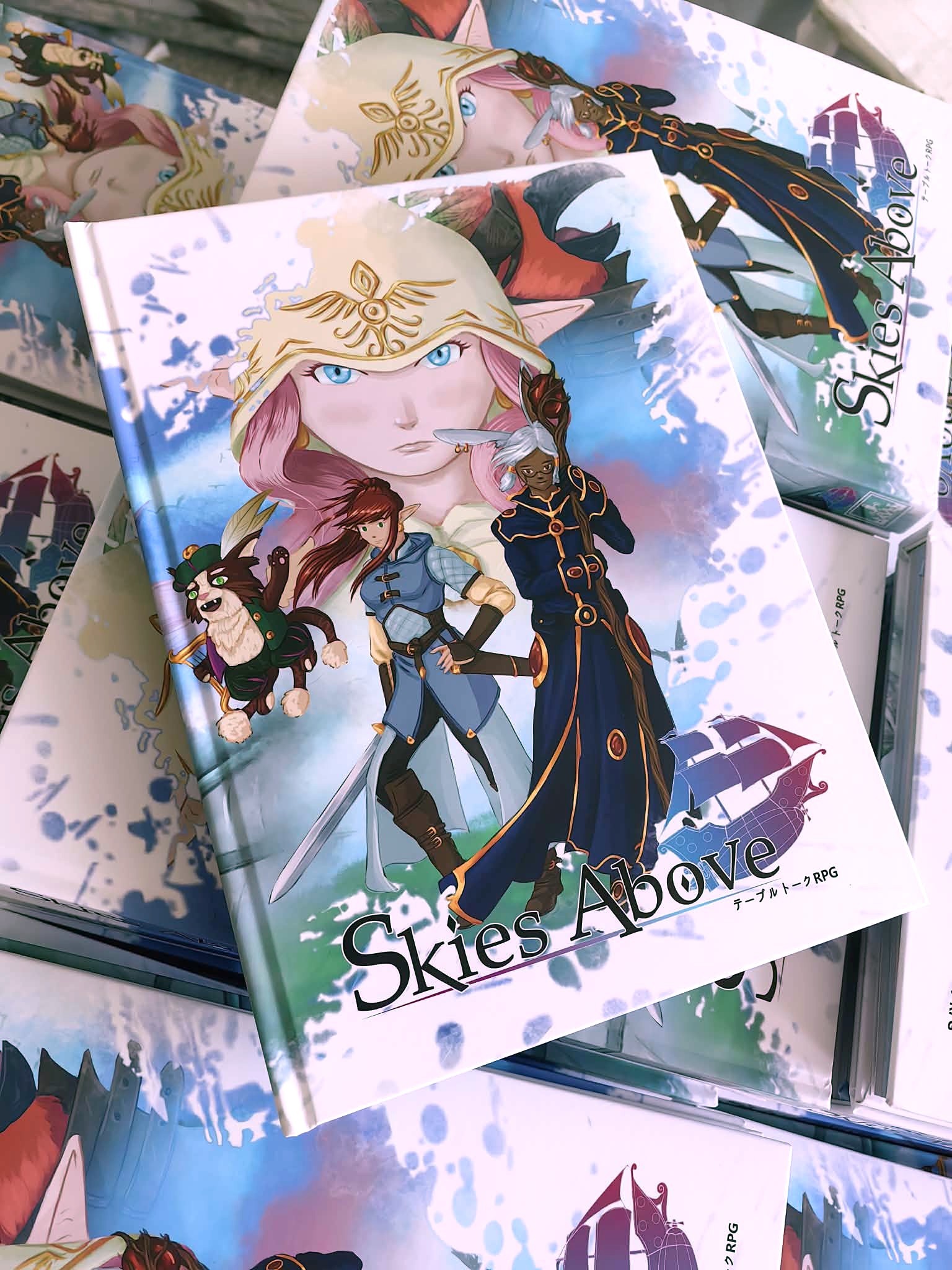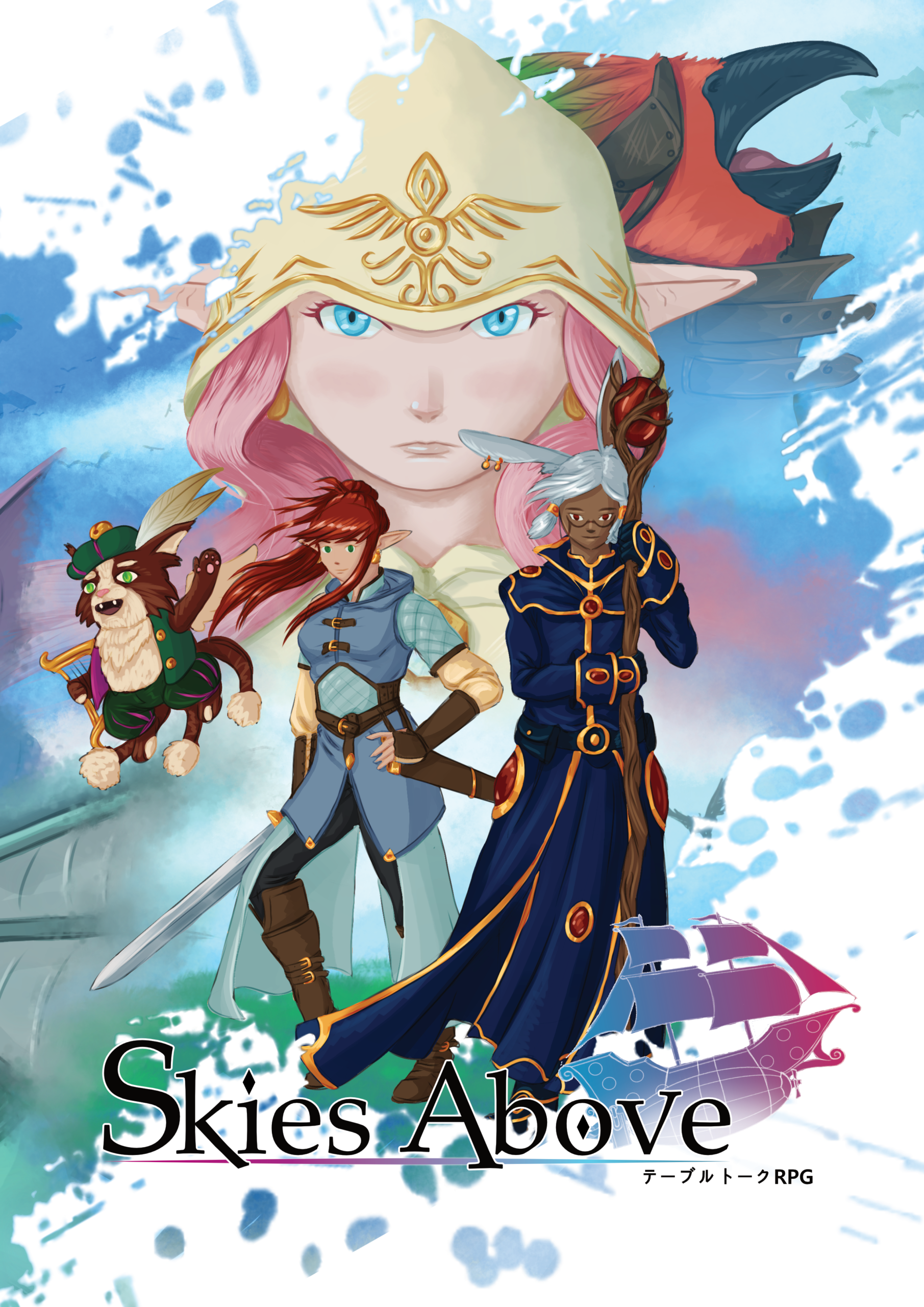 Skies Above is a d8 powered TTRPG inspired by classic Japanese Role Playing Games. It takes place in a vibrant world that was broken long ago during a calamity known as The Breaking and now the lands lay scattered across endless skies.